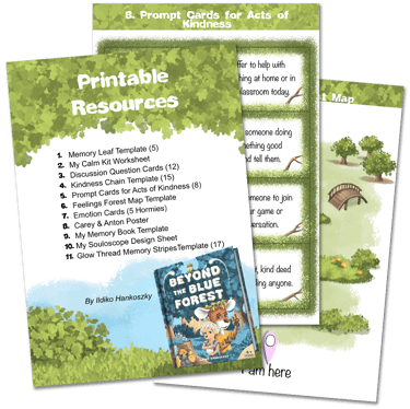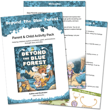 Beyond the Blue Forest is a heartfelt children’s story about grief, change, and hope, created by Ildiko Hankoszky, a parent who experienced loss alongside her children. The book is accompanied by creative resources for children, parents, teachers, and mental health professionals.