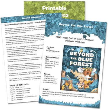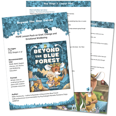 The Beyond the Blue Forest Teacher Resource Pack offers story-led activities designed to help pupils explore emotions safely and meaningfully. Developed by Ildiko Hankoszky, author and illustrator of Beyond the Blue Forest, these resources support discussions about grief, change, resilience, and empathy through engaging, age-appropriate activities.